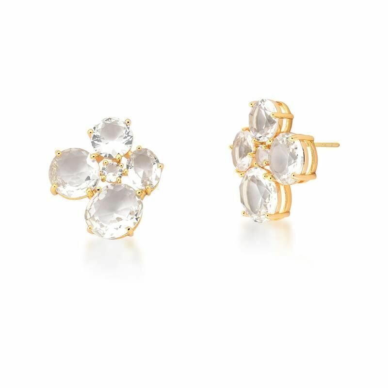 Brinco flor com quatro cristais ovais incolor, perfeito para quem adora um toque delicado e sofisticado. O formato de flor traz um charme especial, ideal para iluminar seu visual, seja em eventos especiais ou no dia a dia.
